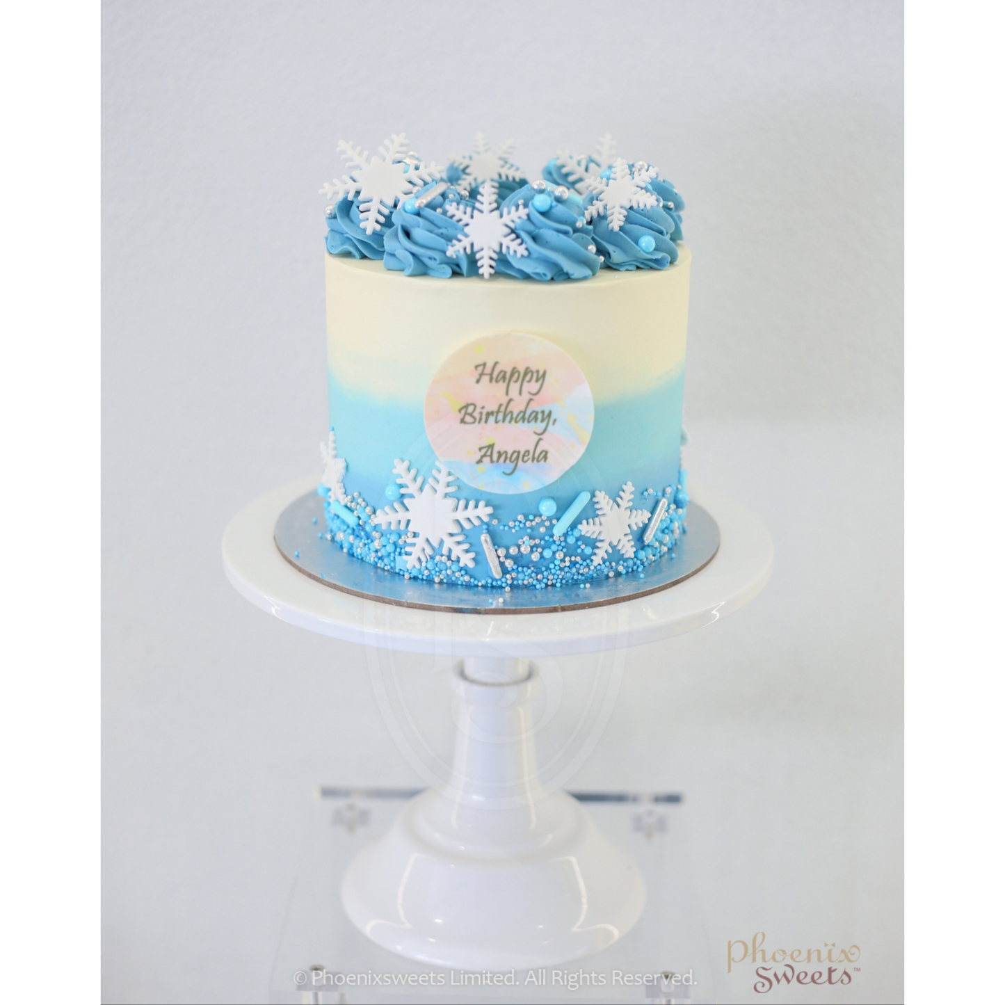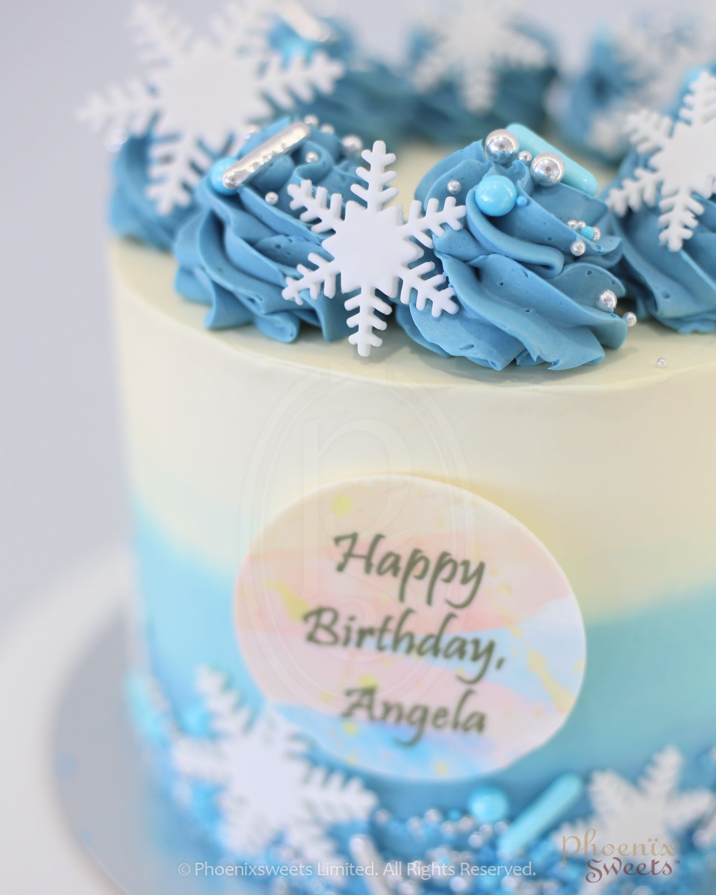 使用最高品質的材料,包括美味的蛋糕和豐富的牛油忌廉製成,貼心地描繪出經典主題,並以閃閃發光的冰藍色和白雪皚皚裝飾而成。